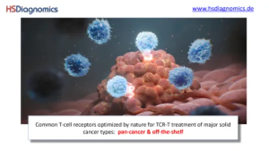 HS Diagnomics GmbH (HSD) is a Berlin-based biotech company specializing in high-resolution, quantitative T-cell receptor (TCR) profiling and tumor-specific TCR discovery for immuno-oncology and TCR-T cell therapy development. HSD combines proprietary TCRsafe technology with its TCanceR database to identify, validate, and functionally characterize tumor-specific TCRs from human samples, including fresh surgical specimens as well as FFPE material. Most important applications are personalized and off-the-shelf TCR-T therapies for solid tumors with high medical need such as lung, pancreatic, breast, and colorectal cancer. Our top TCR-T candidates are effective in a high percentage of patient tumors. Production of our therapeutic T-cells is autologous and via non-viral transfection technologies. Located in Berlin, we are working with two of the biggest clinical centers in Germany to bring our novel TCR-T therapies to solid cancer patients.