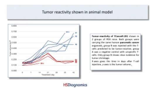 TCanceR-201: Tumor-reactivity measured in lung and pancreatic cancer samples including PDX animal model! HLA-type & mutation allows easy stratification of patients (blood test). Several hundred cases per year in Germany alone. Advanced pre-clinical stage.